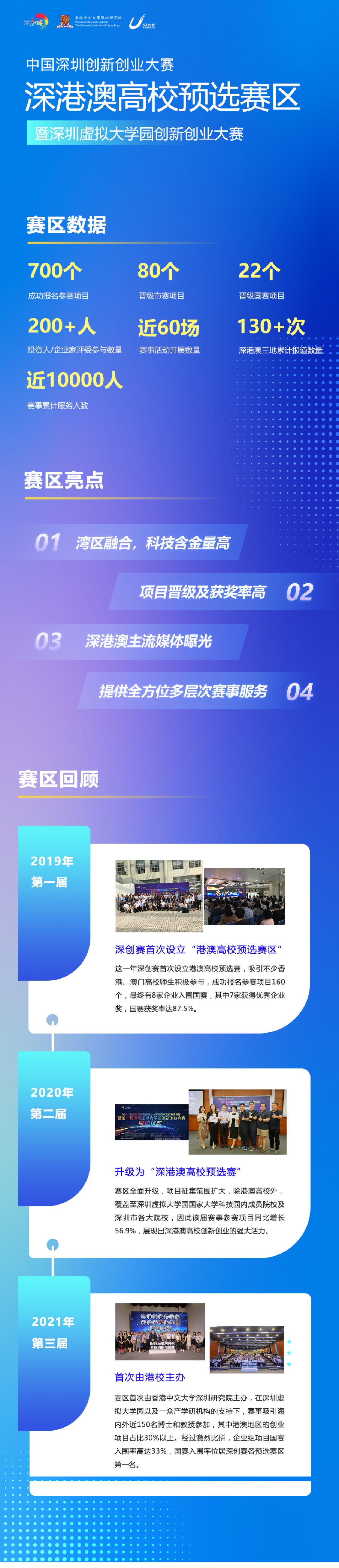 第十四届中国深圳创新创业大赛深港澳高校预选赛区暨第四届深圳虚拟大学园创新创业大赛将于2022年初夏闪亮登场!让我们在热情洋溢的夏天里,挥洒创业热情。作为深港澳高校创新创业项目及最新科研成果展示平台,本赛区自2019年首办以来,已连续成功举办3届。在赛季开始之前,让我们一起回首这过去3年赛区成长的历程!