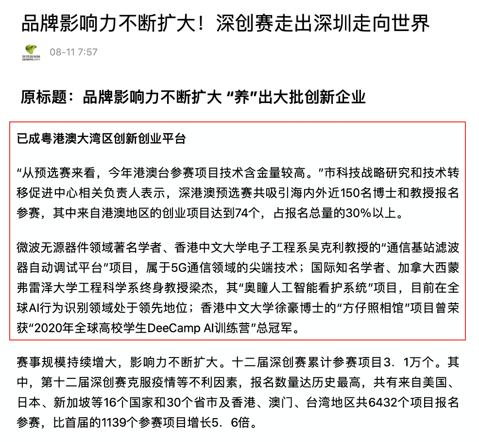 启动仪式辐射深港澳三地,覆盖国内外66所知名高校,深港澳三地政企事业机构代表、高校代表及深港澳高校投资人等出席,线上线下近1000人参与,获17家境内外主流媒体深度报道。
