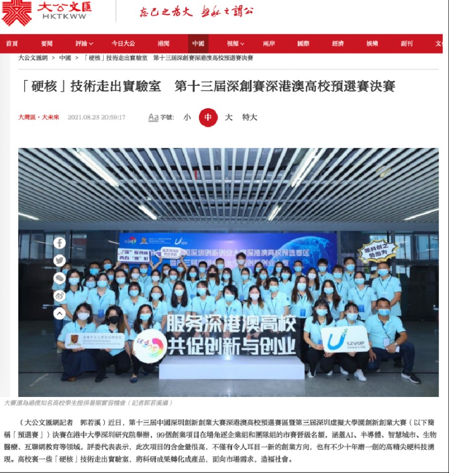 深港澳高校预选赛区作为深创赛14个预选赛区之一,集聚了深港澳高校青年,汇聚多元文化平台,已然成为了深创赛粤港澳大湾区重要的创新创业展示平台。2021年深港澳高校预选赛区首次由香港中文大学深圳研究院主办,通过国市区一体、三级协调联动,共同撬动大湾区特别是港澳两地高校的创新资源。