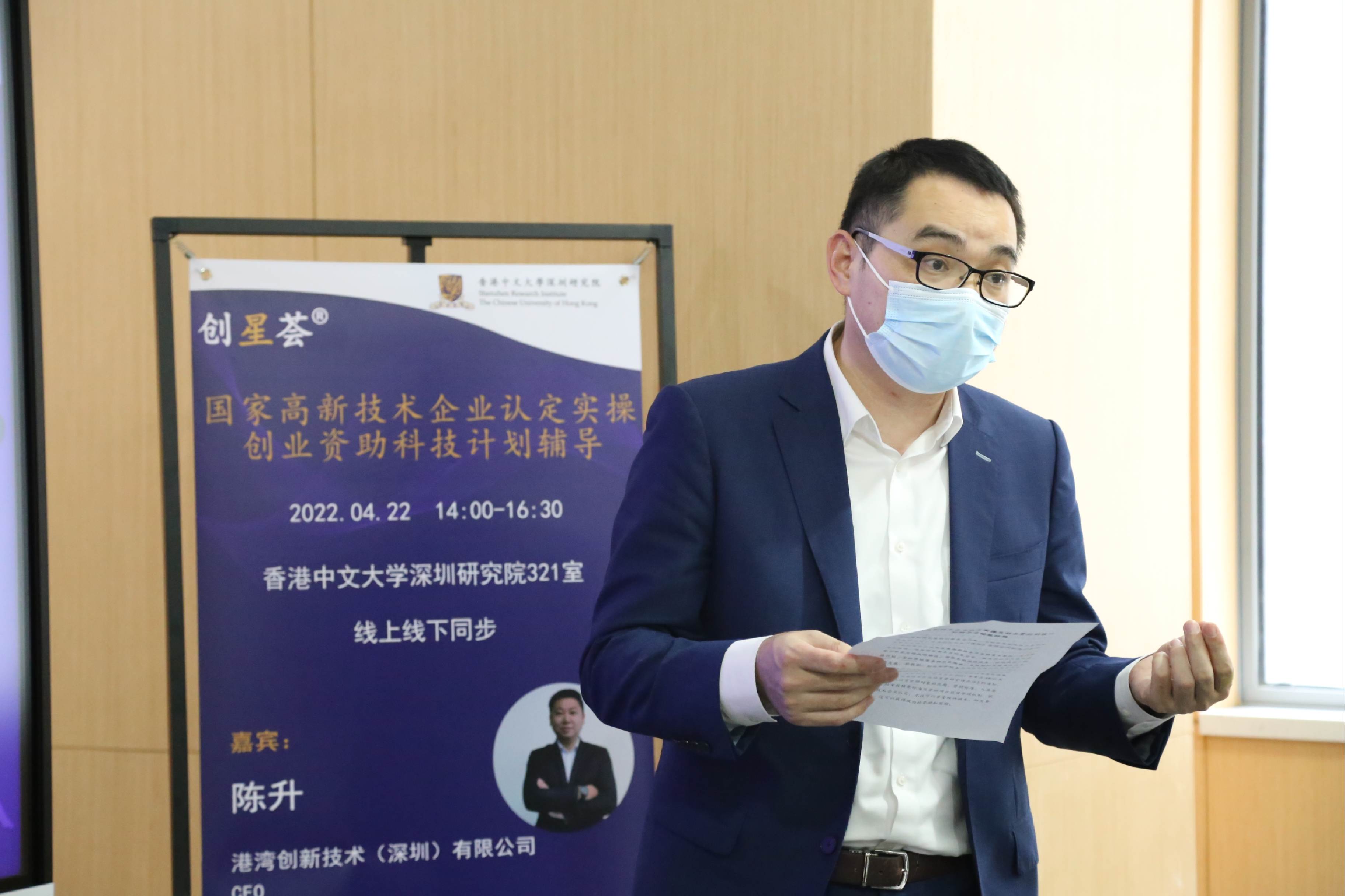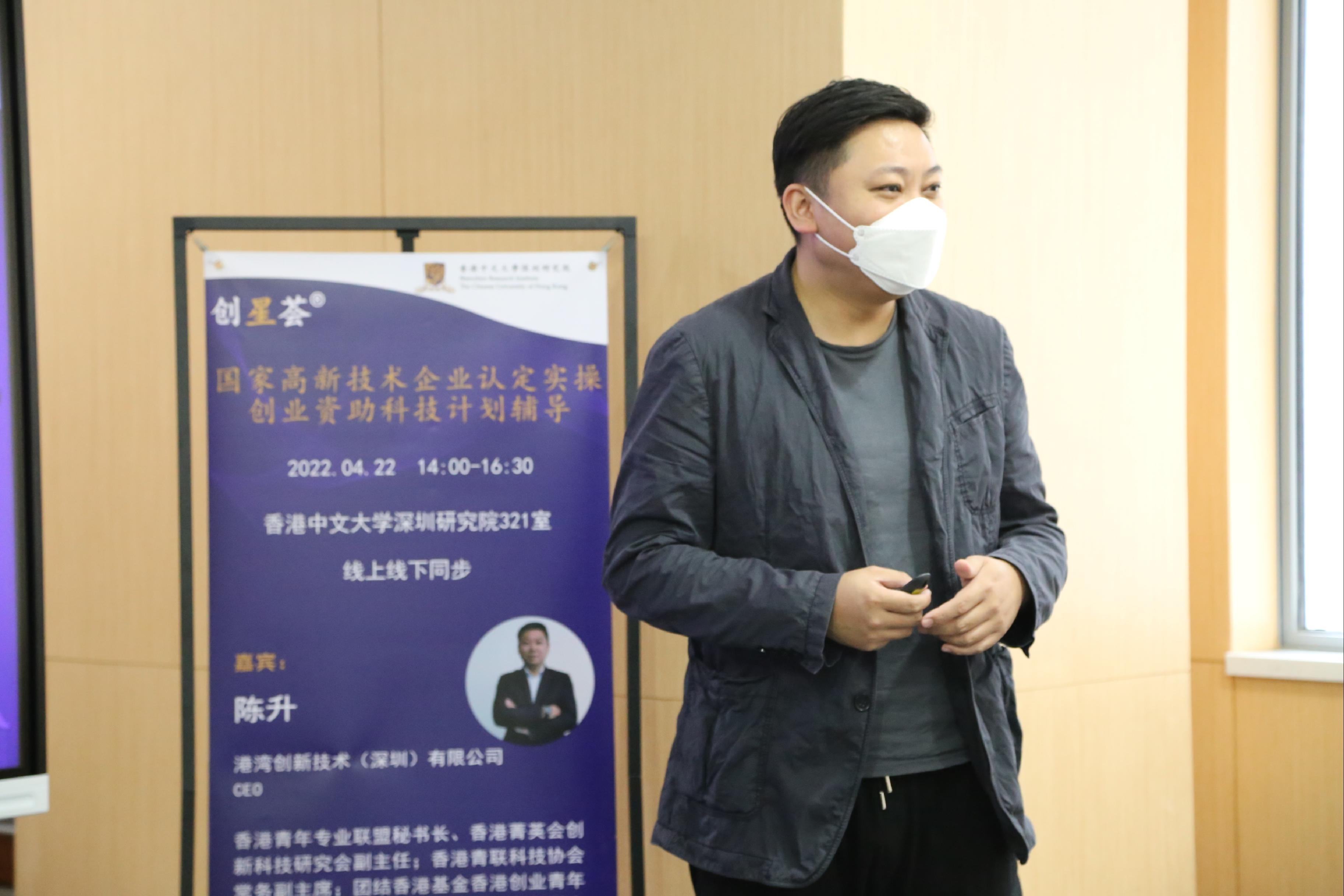 为助力初创企业理解最新的国高认定和创业扶持的申报条件、申报流程、申报材料准备,以便企业根据各自的发展情况,有效把握扶持政策,将科技政策、优惠政策真正落到实处,香港中文大学深圳研究院众创中心于2022年4月22日下午开展创星荟“国家高新技术企业认定实操及创业资助科技计划辅导”活动。