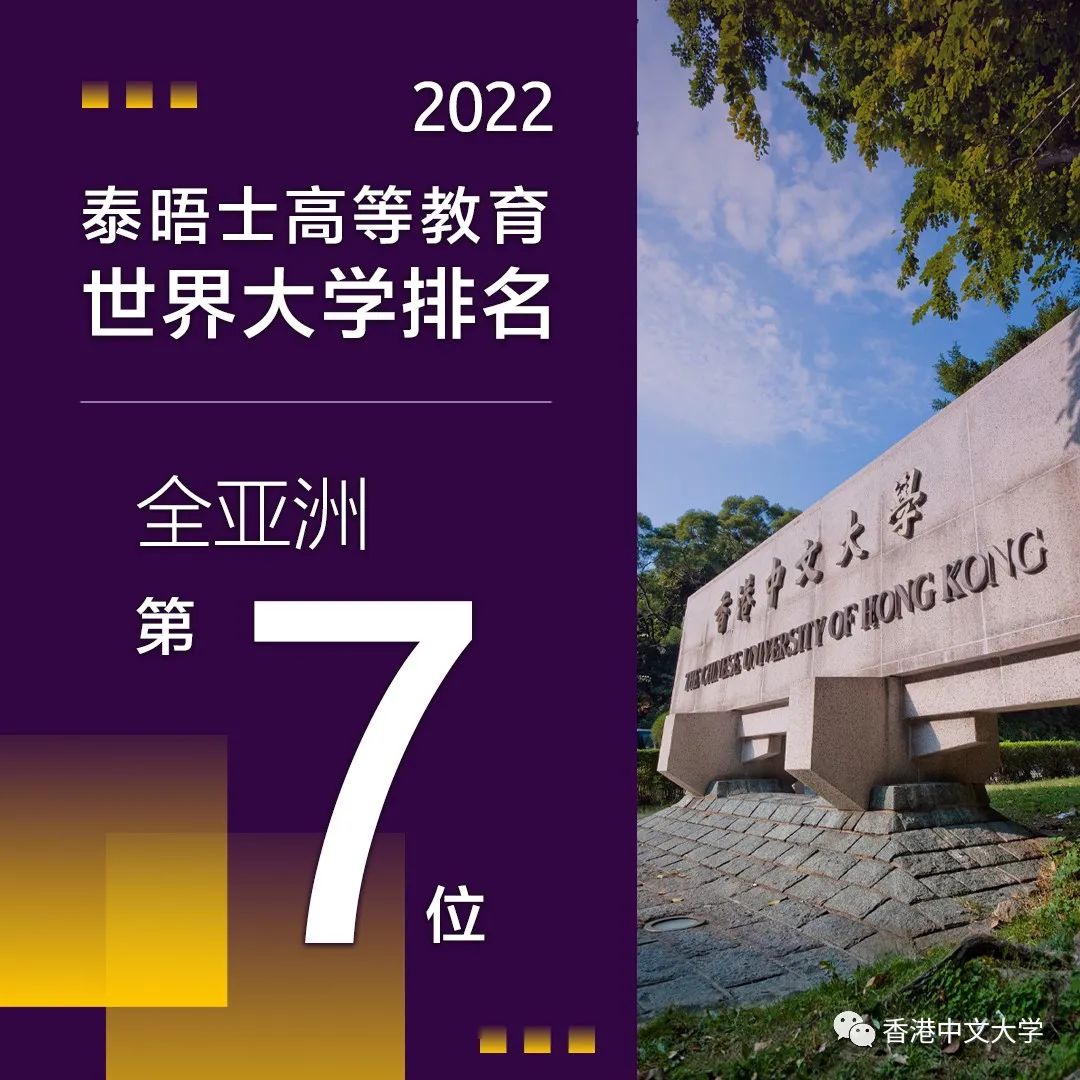 2022《泰晤士高等教育》亚洲大学排名出炉! 香港中文大学排名亚洲第7位!