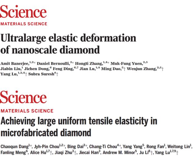 陆洋教授与合作团队首次实现了金刚石的深度弹性变形,相关成果发表在Science等权威期刊,并获得多项资助。陆教授本人也获得了首届国家自然科学基金优秀青年科学基金(港澳)的资助,并入选了香港研究资助局的首届“研资局研究学者(RFS)”项目。
