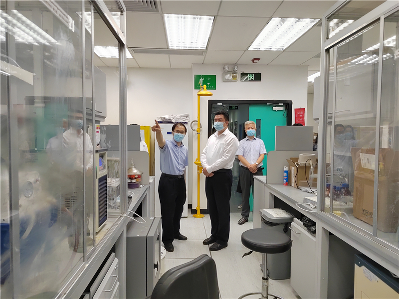 娄岩峰副主任参观了香港科大产学研基地,开展安全生产检查,听取对实验室的各项管理制度和具体使用、存储情况的介绍。娄主任强调,安全生产重于泰山,管生产经营必须管安全,要强化企业主体责任意识、强化工作人员的安全意识。娄岩峰副主任用具体案例为大家敲响警钟,同时要求创新中心尽到属地监管责任。
