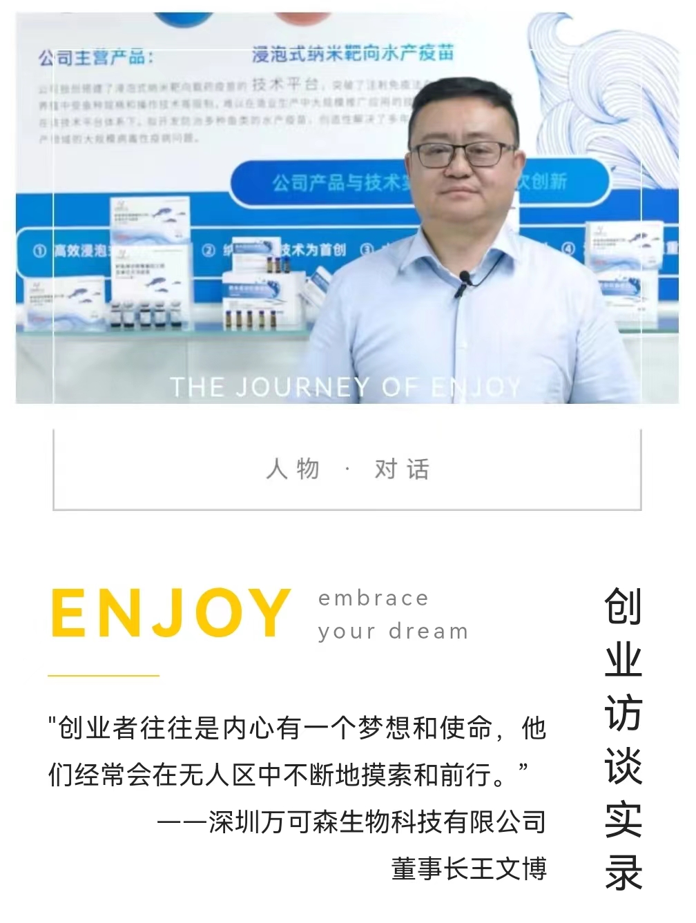 那天,他在母校西北农林科技大学参加论坛会议,会议上,刚好介绍着他们公司的项目。下午的时候,北京的同事说拿到临床批件了,当时群里,大家像炸了一样,很开心。晚上校友、学校的校长和各教授都在祝贺万可森拿到了具有里程碑的批件。王文博先生现在回想起来这个画面,内心依然充满骄傲和满足 。