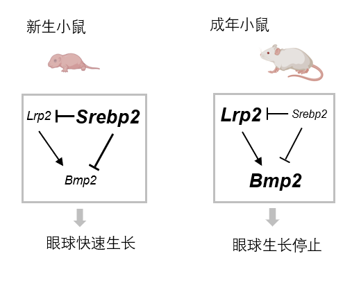 Srebp2-Lrp2-Bmp2信号通路控制眼球生长速度的示意图(图片来源︰熊文君博士提供)