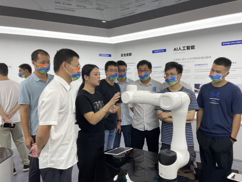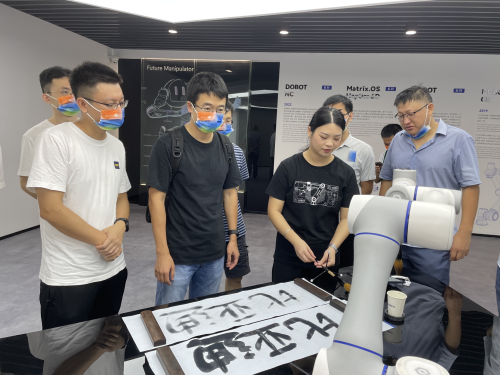 活动第一站,同学们参观了科技展厅,讲解员详细地介绍了各种产品的原理、性能及应用场景,同学们现场体验了激光雕刻、高速高精、安全皮肤等机械臂最前沿的技术,直观地了解了越疆科技在智能机械臂领域的实践和探索,并纷纷为越疆科技的产品点赞。