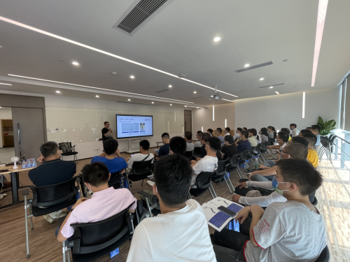 参观科技展厅后是座谈交流环节,上午的座谈交流环节由越疆科技创始人、CEO刘培超主持并讲话。刘培超学长首先对学弟学妹的来访表示热烈的欢迎,谈起自己毕业就创业,感觉一直生活在校园的环境中,在深圳的成长过程中也受到很多校友的帮助和相互支持。校友群体对越疆来说非常重要,山大毕业生刚来深圳这片土地谁也不认识,山大深圳研究院是母校和深圳这个年轻城市的重要联系桥梁。接着他分享了创业七年中的经验和感悟,并预祝各位学弟学妹们顺利毕业!下午的座谈交流环节,越疆科技CTO刘主福全方位地介绍了公司核心产品的解决方案和应用场景等。座谈交流中,同学们围绕机械臂的研发技术以及在智能制造领域的应用等问题进行了深入探讨和交流。通过现场交流,同学们对机械臂和人工智能在智能制造中发挥的作用有了更深入的了解,并表示希望能与越疆进一步开展合作,解决一系列生产研发中遇到的问题。