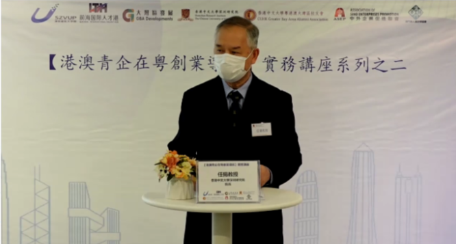 香港中文大学深圳研究院院长任扬教授为活动致辞,他提及:“在香港中文大学颁布的2021-2025策略发展计划中,环球和中国内地、创新及成果转化等范畴是大学深耕的方向,这也将为有志于创业的学生及校友提供有利契机。”