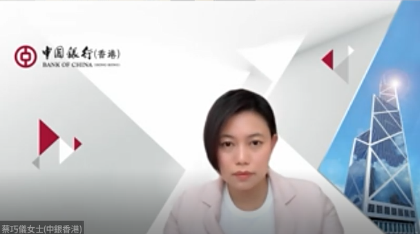 中银香港跨境业务主管蔡巧仪女士为港澳人士在大湾区开户、进行跨境远程工商登记以及湾区社保服务提供业务介绍及操作指引。