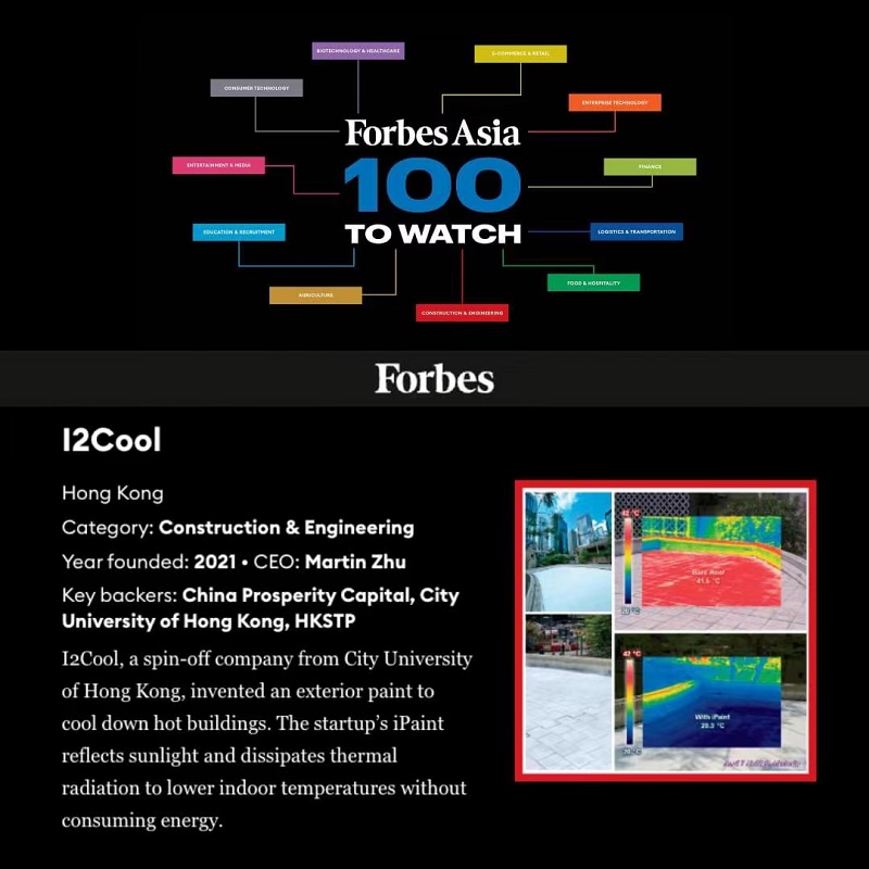 “我们的目标之一是实现碳中和并通过被动式辐射制冷以实现环保降温零碳排放”,为了践行这个目标,朱毅豪博士与团队成员在香港城市大学研究院于2021年6月成立了初创企业i²Cool创冷科技,致力于推广其自行研发的被动式辐射制冷技术及更多创新节能科技。