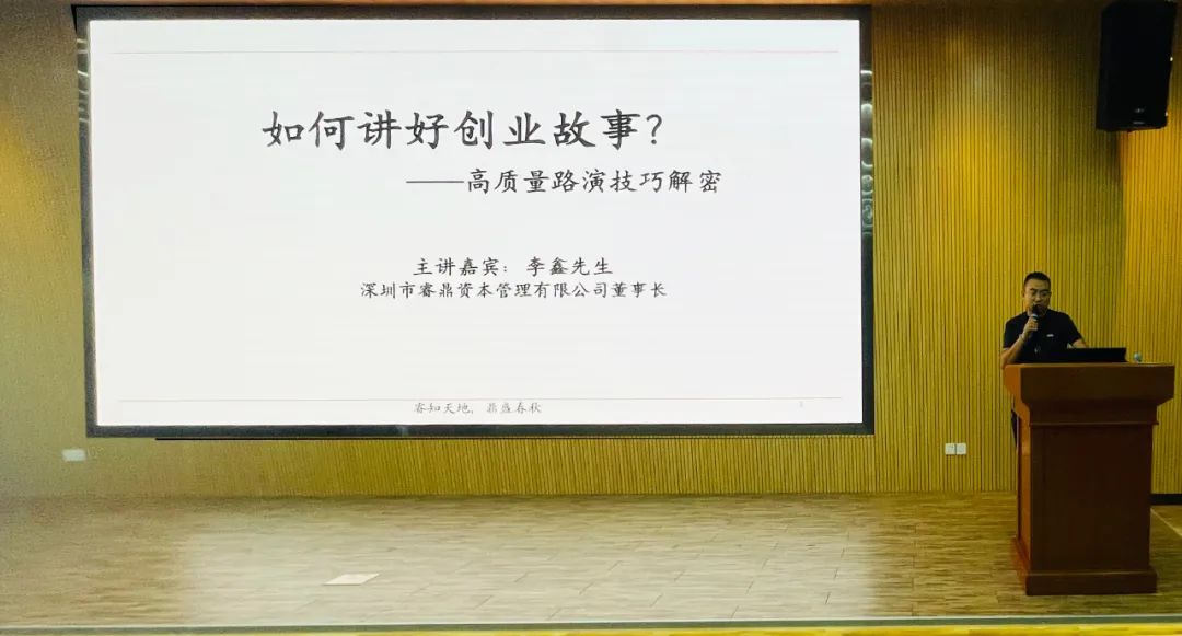 博士科技博士商学院创业导师,深圳市睿鼎资本创始人——李鑫作为主讲嘉宾,为参会企业家嘉宾们带来了《提升项目路演技巧,教你讲好项目故事》的主题讲座。李鑫总曾任深圳市公共就业服务中心特聘导师、深圳市科创委特聘专家、阿里巴巴全球创客总决赛评委、中国创业之星大赛决赛评委等,具有丰富的投资经验和精准的投资眼光,专注于人工智能、先进智造、新兴消费、医疗健康领域的早期投资。