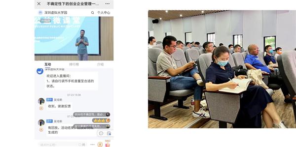 本次活动在深圳虚拟大学园领导及兰大校友同学、企业家嘉宾的大力支持下,取得了圆满成功,此次课堂线下人数41人(因疫情要求限50人),采取隔位就坐的方式;线上人数达2000+,达到了预期的效果。