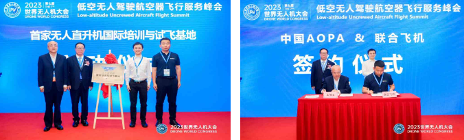 报告论坛上,中国航空器拥有者及驾驶者协会(AOPA-China)携手联合飞机集团,秉承“优势互补、资源共享、平等互利、共同发展”的原则开展合作,举办了中国首家“无人直升机国际培训与试飞基地”启动仪式,同时举行了战略合作签约仪式。