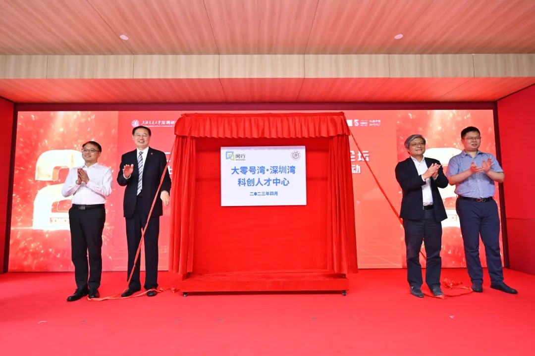 顾锋、张海燕、邓衢文、陈方若上台,共同为“大零号湾·深圳湾科创人才中心”揭牌。