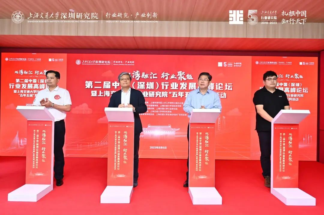 2023年8月5日,由上海交通大学安泰经济与管理学院、上海交通大学深圳研究院主办的主题为“双湾融汇·行业聚能”的第二届中国(深圳)行业发展高峰论坛暨上海交通大学行业研究院“五年五城”系列活动在深圳研究院举行,来自沪深两地的政府领导、专家学者、上海交大校领导、安泰学院领导及校友代表济济一堂,共同探讨中国产业经济现状和中国行业未来发展趋势,并就如何进一步通过行业研究向产业赋能,推动深圳“20+8”战略新兴产业及未来产业发展等议题展开深度交流。