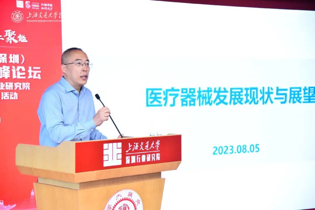 乐普(北京)医疗器械股份有限公司高级副总经理魏战江,深圳证券交易所科技成果与知识产权交易中心执行董事、总经理谢文海分别围绕医疗器械行业发展以及科学技术成果转化作主题演讲。