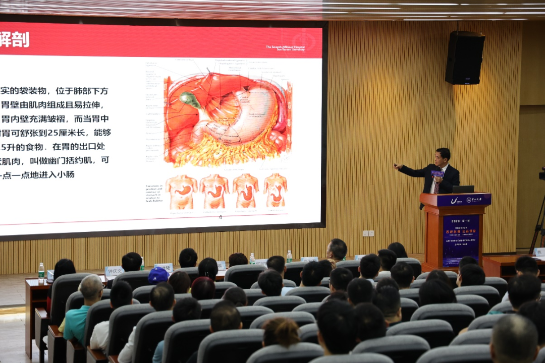 在随后的讲座上,中山大学附属第七医院何裕隆院长深入浅出的向观众们介绍了胃的解刨、胃癌的概述及流行病学、胃癌的三级预防。