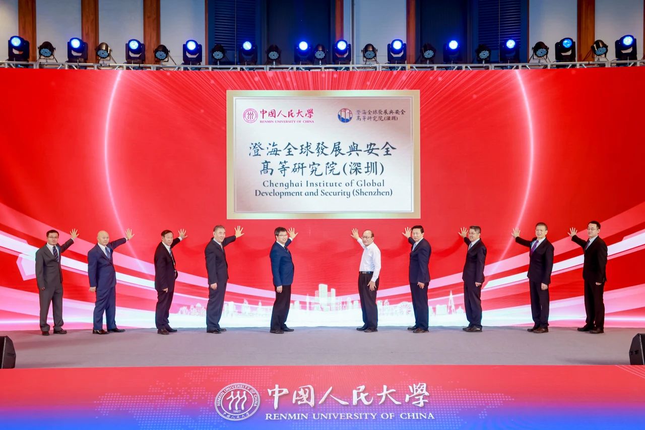 林尚立、钱小芊、叶澄海、郭卫民、于洪君、乐玉成、朱成虎、戴北方、支晓强、李宏涛共同为中国人民大学澄海全球发展与安全高等研究院(深圳)揭牌。