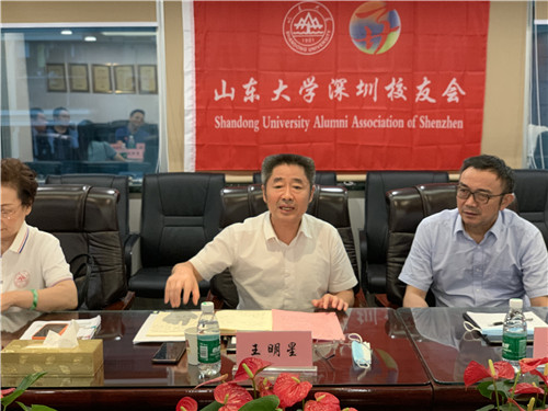 王明星代表深圳研究院对向座谈会的召开表示热烈的祝贺!向长期以来一直关心支持母校和研究院发展的各位校友表示衷心的感谢!他指出,在喜迎中国共产党百年华诞之际,在大家深入贯彻习近平总书记给《文史哲》编辑部重要回信精神、筹备120周年校庆的时刻,我们在这里传达山东大学2021年校友工作会议暨校友会四届二次理事会会议精神,研讨谋划深圳校友工作,共襄百廿校庆盛举,具有十分重要的意义。对深圳校友会和校友取得的成绩表示热烈祝贺,对深圳校友会和校友对研究院做出的贡献表示感谢,同时对深圳校友会和校庆工作提出几点建议。第一是对校友会和校庆工作提出三点期待,期待广大校友关注校庆、宣传校庆,期待广大校友参与校庆、共享校庆,期待广大校友支持校庆、服务校庆。第二是建议校友会为“百廿校庆”活动策划几项重点工作,充分展现深圳的特色和优势,为母校献上在深山大人的祝福。第三是希望校友会以“百廿校庆”为契机,加强队伍建设,吸引更多校友加入校友会组织,更好地为广大校友服务。他表示,站在建党百年和建校百廿的重要历史节点,这次校友会恰逢其时、意义重大。希望大家永葆“闯”的精神、“创”的劲头、“干”的作风,“追求卓越,只争朝夕”,努力把深圳校友会打造成有高度、有温度、有深度的精神家园,凝聚3万在深山大人的磅礴力量,为粤港澳大湾区和深圳“双区”建设、为学校“双一流”建设、为中华民族伟大复兴做出山大人新的贡献!