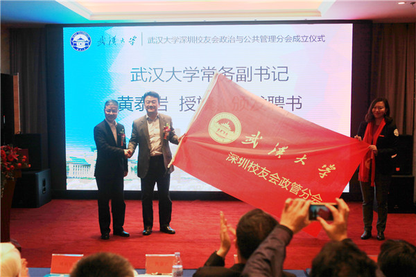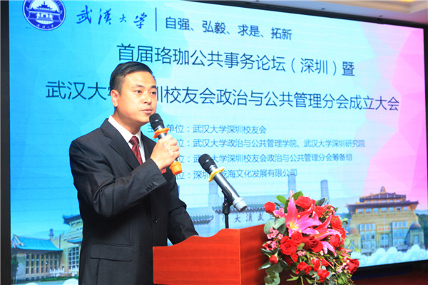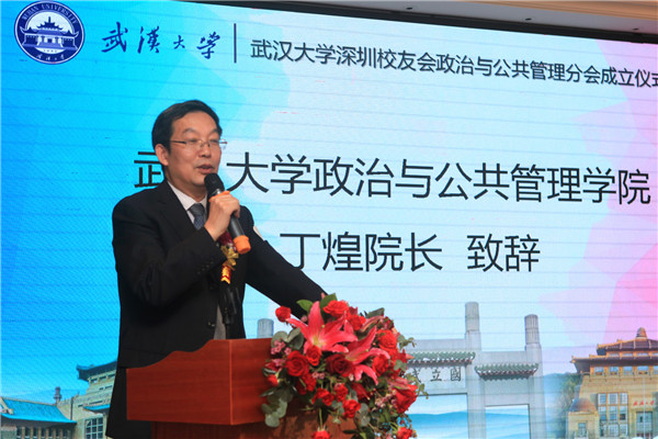 丁煌院长在致辞中表示,校友是学校和学院的名片,是衡量和检验学院人才培养质量的重要指标和标准。校友资源是学院的宝贵资源,是学院发展的不竭动力和坚强后盾。政管分会的成立为深圳校友搭建了一个交流信息、增进感情、相互帮助的平台,希望大家协力将之打造建设成为“学校支持校友,校友反哺母校”的纽带,使其最大限度地为增进校友情感、助力校友事业发展、共创学院美好未来做出贡献。也希望全体校友能够继续弘扬武大自强、弘毅、求是、拓新精神,凝心聚力,团结互助,继续支持武大和政管学院发展。