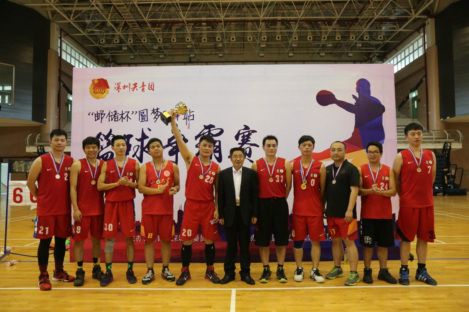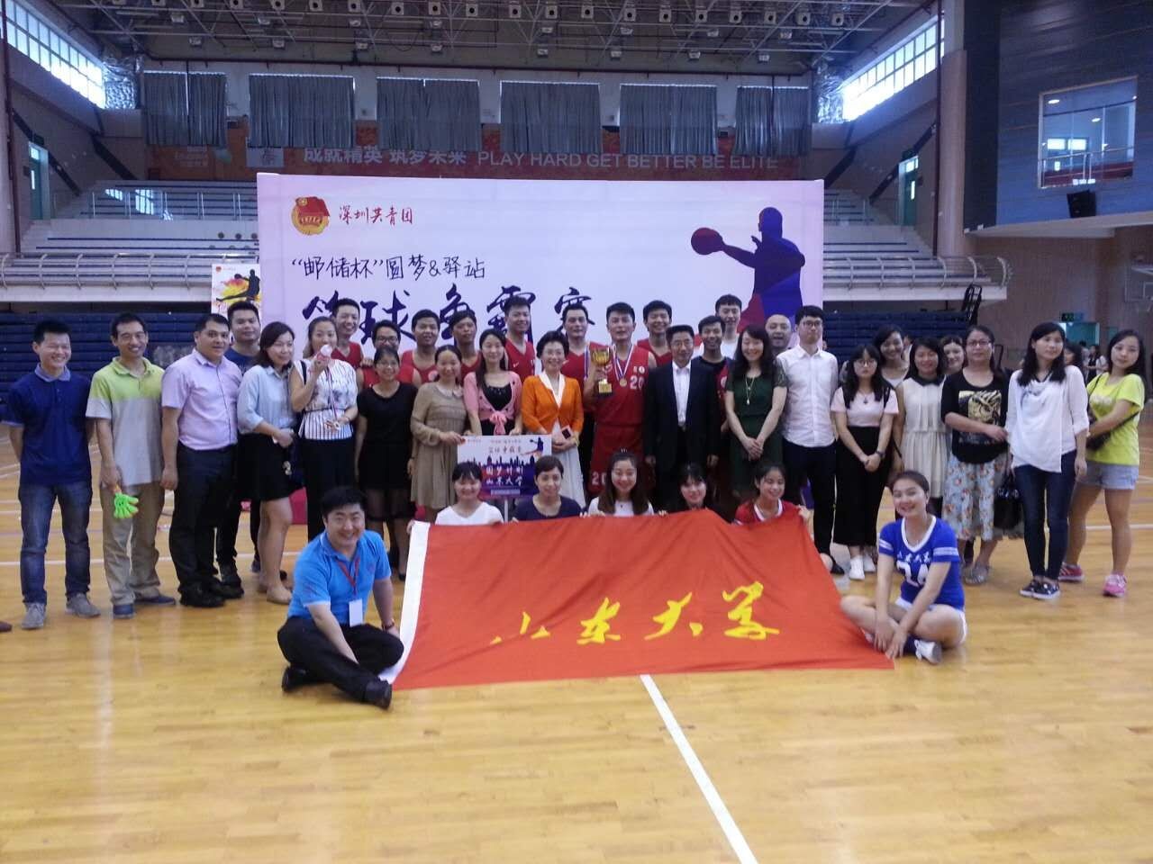 为庆祝“五四”青年节,增进青年之间的交流,丰富来深圳求职求学青年的业余生活,营造积极、健康向上的文化氛围,帮助青年更快更好的融入到深圳,深圳团市委主办了首届“无兄弟,不篮球”“邮储杯”圆梦&驿站篮球争霸赛。山东大学(深圳)“圆梦计划”学员组成了山大圆梦代表队参加了此次比赛。4月10日下午,此次篮球赛在深圳高级中学拉开序幕,经过了4月16日、17日两轮激烈的小组赛,在4月24日下午进行了决赛。参加此次比赛一共有8支队伍,由4所参加深圳市“圆梦计划”公益项目高校(山大、北大、人大、北外)学员组成的代表队和4个区(南山、福田、宝安、龙岗)青年驿站公益项目成员组成的代表队,采取抽签的方式分别进行了圆梦组和驿站组的分组对抗,最后决出冠、亚、季军。山大圆梦队最终获得了比赛的亚军,圆梦组第一的成绩。